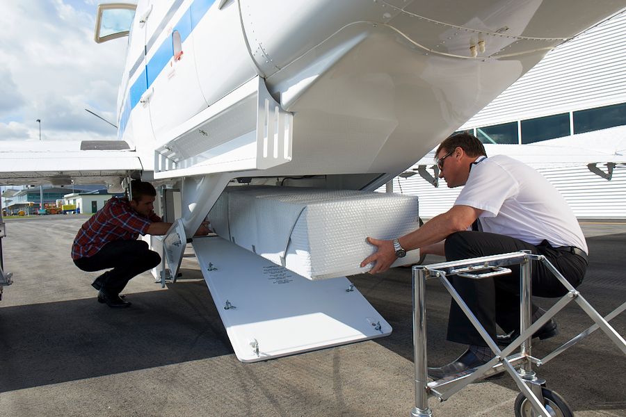 Pilot loading luggage